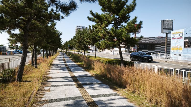 林崎海水浴場から江井ヶ島海岸まで、このような自転車専用道路となっています。県道554号姫路明石自転車道線の一部です。海岸沿いのコースで、眺めも良く、潮風を感じて走るので、特に今日のような好天気は気持ちが良いです。