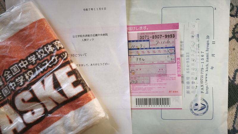 すでに三ノ宮まで戻ってきており、今から伊丹まで往復するのが億劫に感じました。かと言って、そのままだと処分されてしまうので、もったいないです。着払いで送ることは可能とのことでしたので、このままタオルが捨てられるのは忍びないので、着払いで送ってもらうようお願いしたのですが、昨晩届いて、そのままにしていました。