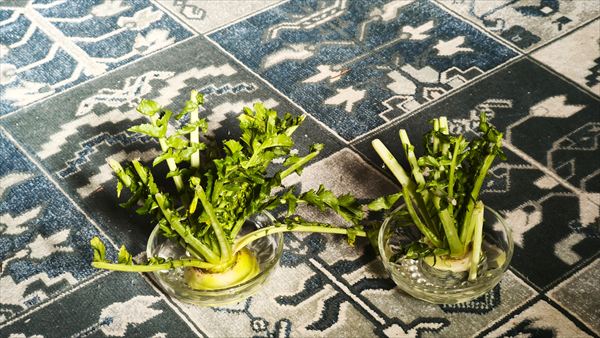 大根の葉っぱが付いた根元部分を小皿に置いて水を入れて、霧吹きで水をかけて2階の出窓の日当たりの良い処に置きました。2,3日このまま置いて、庭の隅に植えようかと思います。これから寒い時期になるので、菜の花が咲くまで育つかどうかはわかりませんが、何年か前には小さくて黄色い菜の花が咲いた記憶があります。来年早々の楽しみの一つです・・・